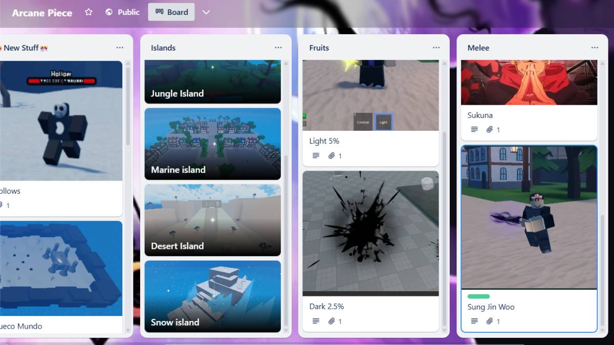 The Arcane Piece Trello board is great to use when you want some specific information about the game, like how to get the Sung Jin Woo Melee fighting style. You can also look up: