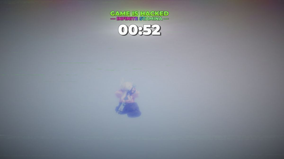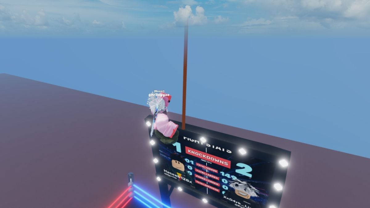 Now jump down from the platform and start going off the map diagonally to the right from the sign at the boxing ring. You will do this by equipping your fists (on 1) and dashing forwards (on space). The game will tell you it disconnected you, but when you try to leave, it doesn't let you. Instead, you will end up in the void.