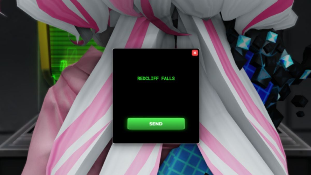 In the lobby of TDS, look around. If you have all the previous Mega Tokens, you should be able to see the area with a greenlit computer screen. Approach it and it will ask you for a code. If you want you can run around searching for the hidden letters, but the code is REDCLIFF FALLS. It is the same for everyone, you just have to type it to activate it.