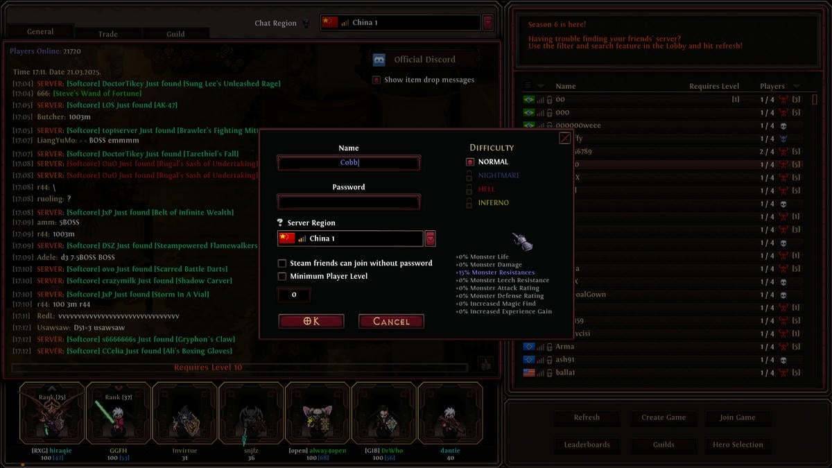While creating a lobby, you'll only get the Normal Difficulty option as a new player and the associated monster and magic stats will be listed under there (see image above). To unlock the Nightmare Difficulty, you must defeat Mevius The Rift God in Act 7. Similarly, defeat the same boss in Nightmare mode to unlock the Hell Difficulty. The Inferno stage was recently added to challenge players even further.