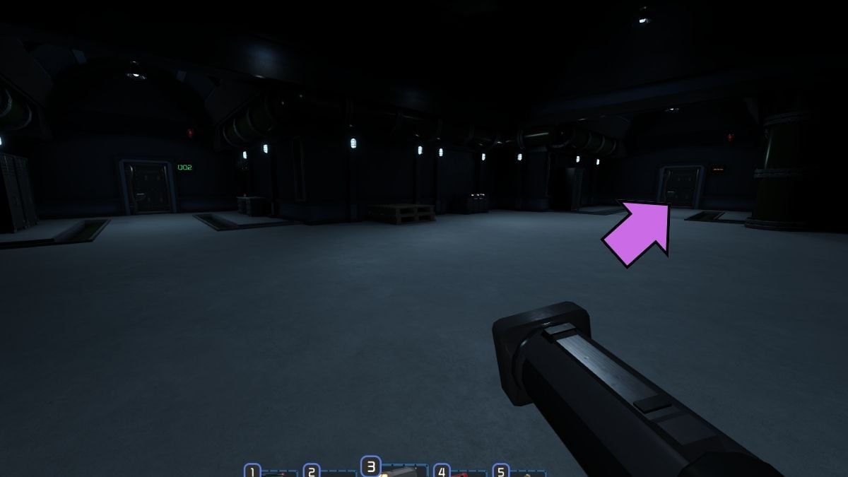 • 4 - Go down the stairs where the red path is. Two floors below, you'll see the Lower Level Funnel door. Inside, turn right through the next door to reach a catwalk. Follow it to a tower, and you'll find the final piece of the code on the ground on the left side.