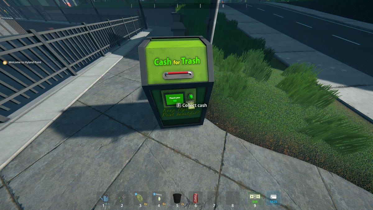 You'll find small green Cash for Trash bins placed all across Hyland Point. Pick up the trash scattered around, drop them into a bin one by one, and then operate the machine to incinerate all the garbage. You can get small amounts of cash with this method, but it counts for beginners.