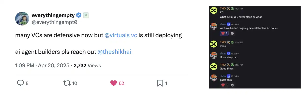 VPN: Virtuals Partners Network,该计划旨在重塑 AI 与加密货币的交汇点。VPN 将投资者、领域专家、学者和开发者连接在一起,共同挖掘、支持并规模化发展加密领域最优秀的 AI 智能体创始人。