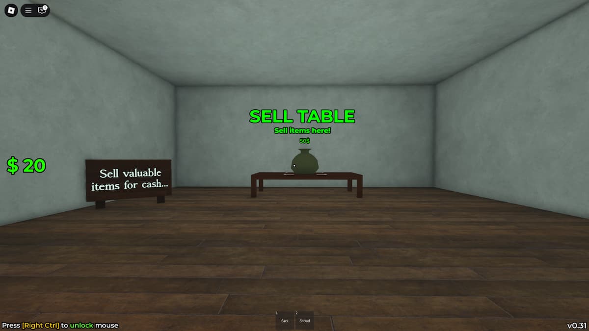 • Function: This is where you sell your loot! Drop sellable items onto the pads on the tables. They'll turn into money bags based on their value. Hold 'E' to collect the cash. Items tagged as "valuable" are worth more. Non-valuable items usually sell for $5 max.