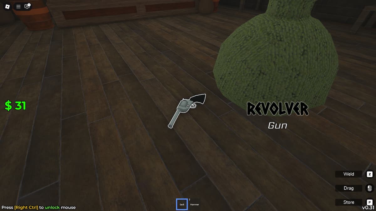 4. How to Store Items: While the Sack is equipped (in your hands), look at the item you want to pick up so your aiming dot is over it. Then, press the 'F' key. Poof! The item goes right into your Sack.